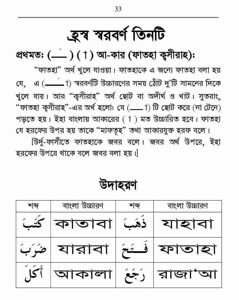 হ্রস্ব স্বরবর্ণ তিনটি – ১ম- আ-কার – আল্লাহ সর্ব শক্তিমান